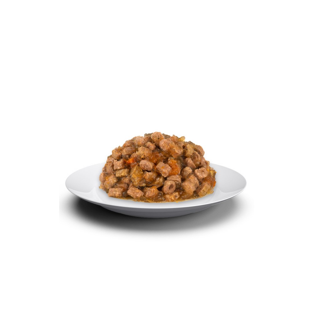 İçerik: Et ve Et Ürünleri (En Az %90 Et ve Et Ürünleri), %4 Kuzu, Sebzeler (En az %4 Havuç), Mineraller, Yağ (Somon Yağı), Çeşitli Şekerler.