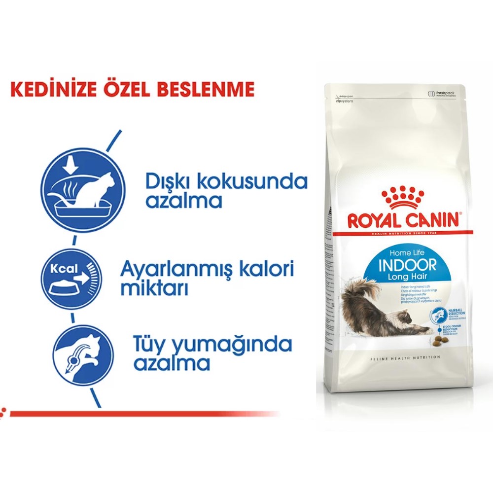 Evde yaşayan kediler sınırlı aktiviteye sahiptir ve yemek obesite riski artar ve temizlenmek zamanlarının 30-50 si için diğer kedilerden daha fazla zaman harcamakla birlikte daha fazla tüy sindirim sistemine katılır.Sindirilebilirliği yüksek, Indoor 27, hidrojen sülfit oluşumlarını, diğer kapalı ortamda yaşayan kedilere özel mamalarınkine kıyasla, ortalama %60 azaltarak, dışkı kokusunu anlamlı ölçüde giderir; dışkıdan çıkan bu gazın kokulu olduğu bilinir.